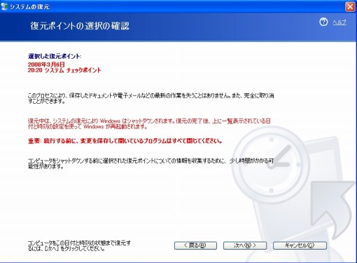 ところで、システムを復元してみたものの、そのポイントが不適切であった場合など、